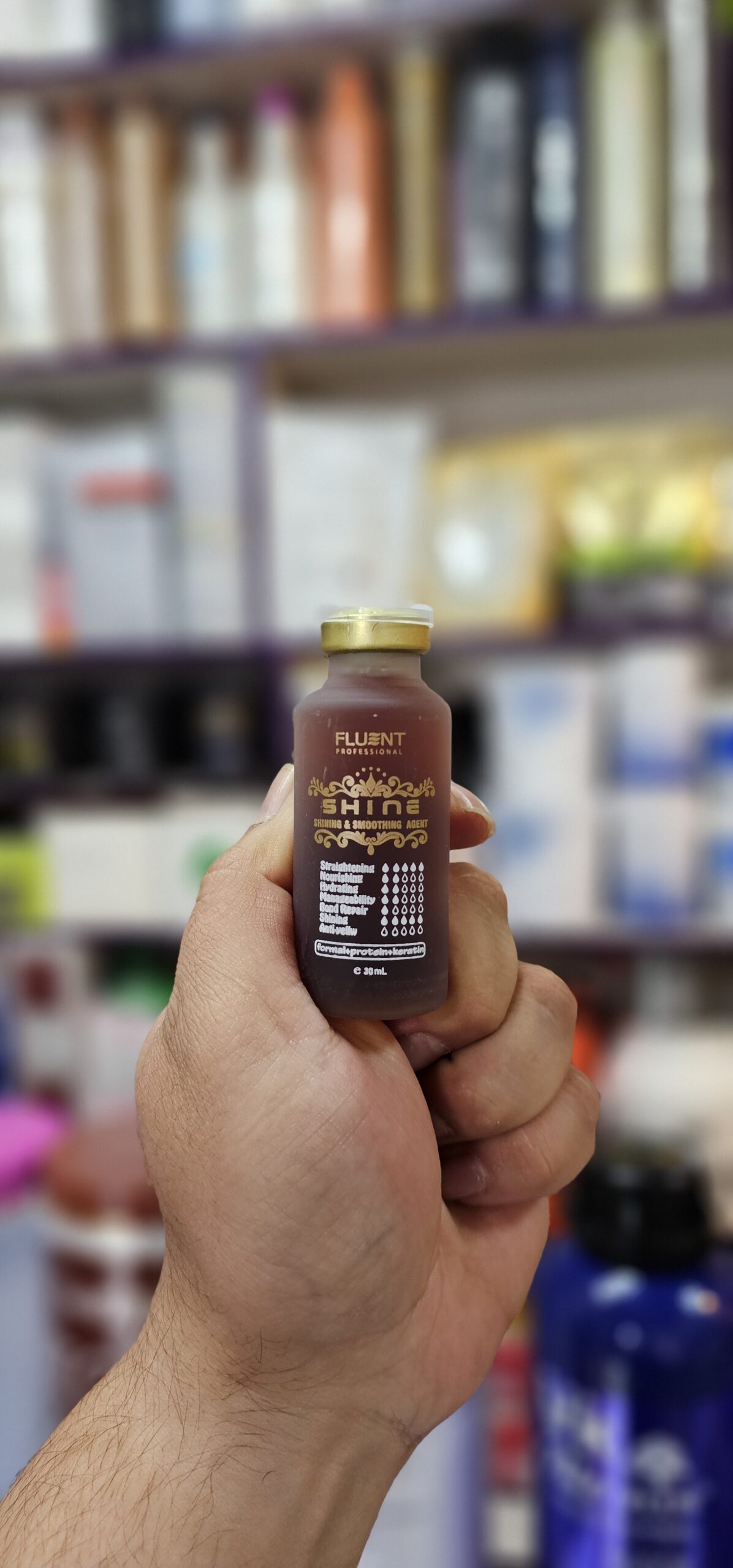 از تمامی قطره های سوپر احیاء شاین موجود در بازار کیفیت و کارائی بهتری دارد دستور مصرف : به ازای هر 1000 میل مواد تراپی ( کراتین – پروتئین- بوتاکس) 10 قطره از قطره فلوئنت ریخته می شود 20الی 25 درصد شاین و احیا را بالاتر می برد